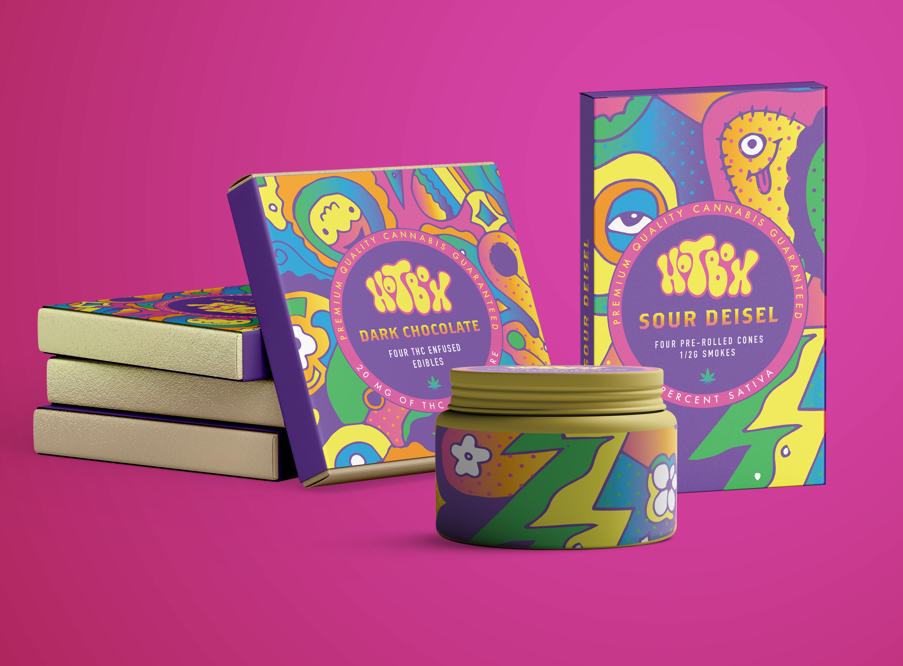 Hotbox is a cannabis brand packaging project that features three different cannabis products. The components of this project are chocolate edibles,a topical lotion, and a box of pre-rolled joints. The overall look of the packaging was inspired by psycodelic artwork that was popular in the 60s. The hand done Hotobox logo and colorful psycodelic illustrations create a fun, and laid back hippie asthetic. A perfect look for a contemporary cannibus brand that doesn’t want to let go of their old stoner culture.